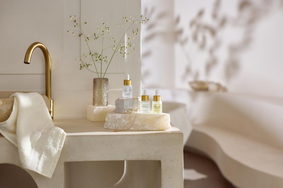 ebenmäßiges Hautbild, während feine Texturen und angenehme Düfte Ihr Pflegeritual zu einem